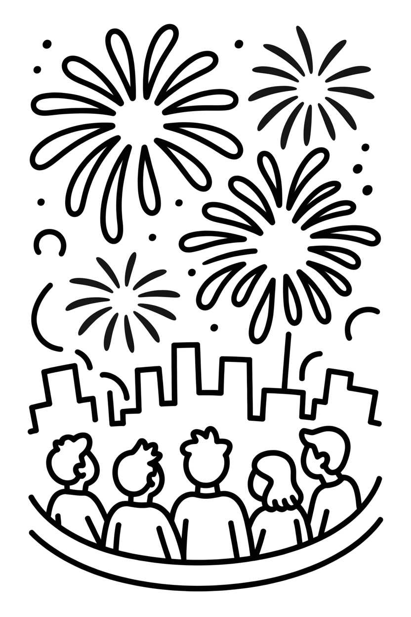 Oud en Nieuw kleurplaatVuurwerkshow